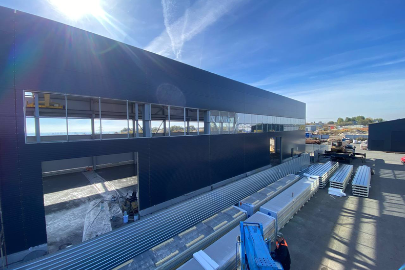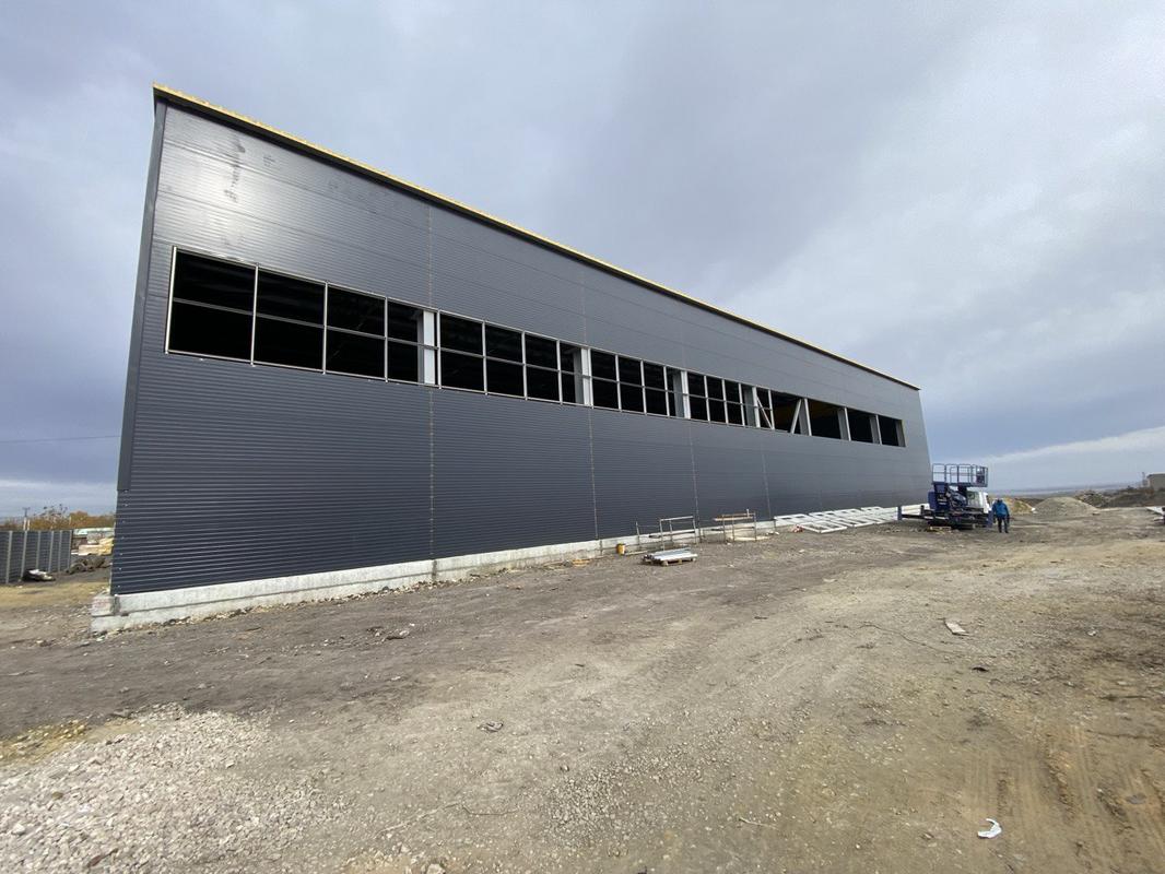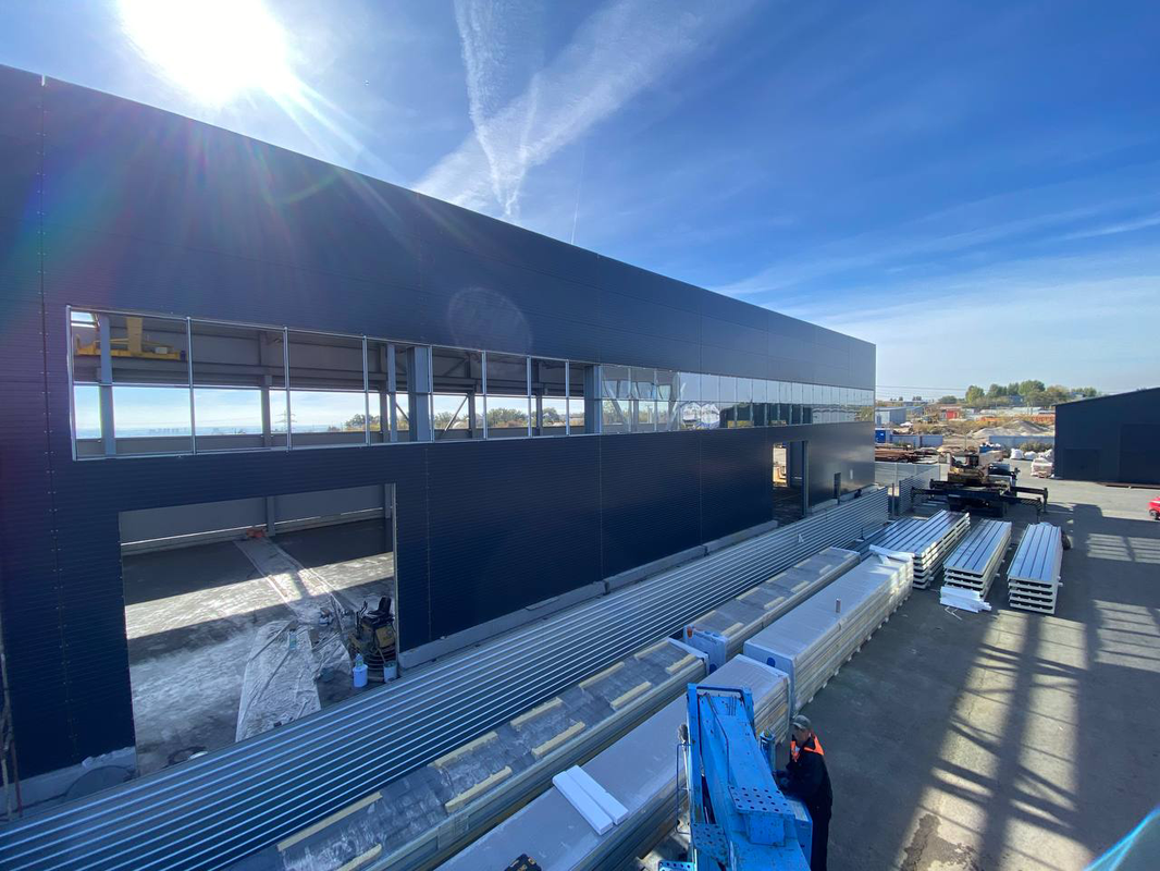 По проекту были реализованы длинные протяжённые витражи по всему периметру здания, обеспечивающие естественное освещение и современный внешний вид. Остекление интегрировано в металлический каркас, полностью герметично и адаптировано под эксплуатацию в условиях промышленного объекта.