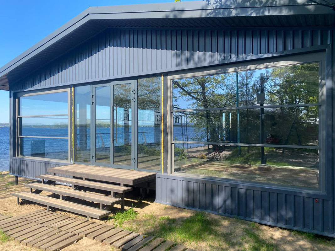 Проект фасадного остекления прибрежного зала с максимальным раскрытием вида на воду. Использованы алюминиевые профильные системы с большими стеклянными плоскостями, обеспечивающие высокую светопропускную способность и визуальную лёгкость конструкции. Остекление формирует единое пространство с окружающим ландшафтом, защищая помещение от ветра и осадков, при этом сохраняя ощущение открытости и панорамы. Решение идеально подходит для зон отдыха, ресторанов и частных резиденций у воды.