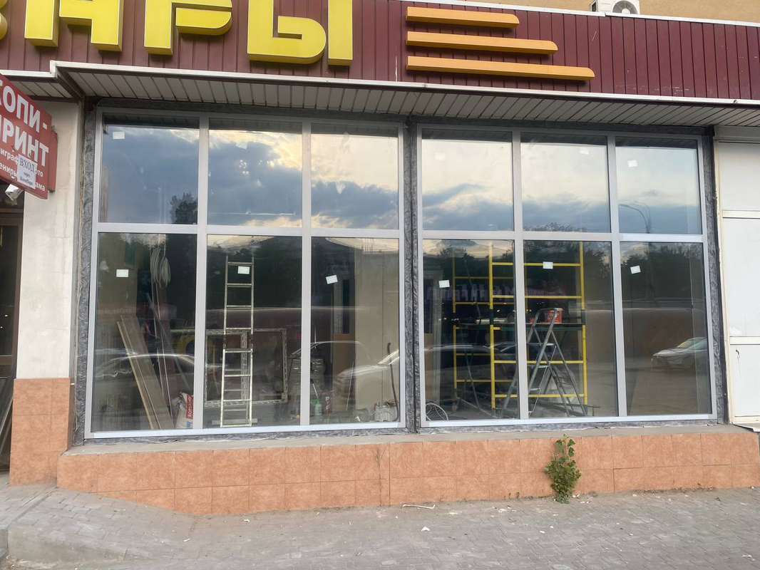 Внутри стало значительно светлее: естественный свет заполняет всю площадь, подчеркивая глубину помещения и облегчая дальнейшее зонирование. Конструкция выглядит легкой, но при этом сохраняет ощущение надежности и завершенности, что особенно важно для коммерческих объектов с высокой проходимостью.