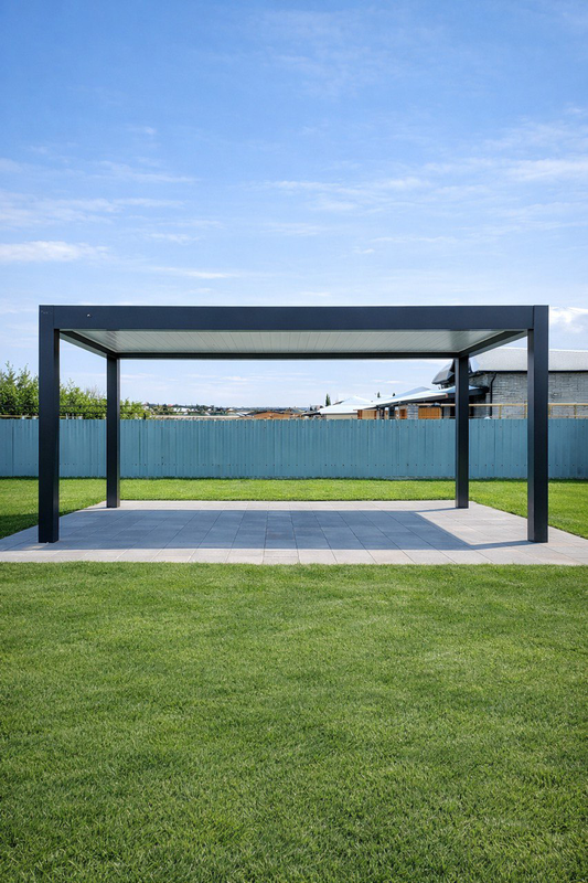 Сначала это была просто открытая площадка во дворе - ровная плитка, вокруг забор и никакой защиты от солнца или осадков. Пространство использовалось редко, скорее как проходная зона. С появлением лаконичной алюминиевой перголы все изменилось: конструкция задала границы, добавила ощущение уюта и сделала участок функциональным.