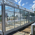 Такое решение обеспечивает максимальную открытость пространства в тёплое время и надёжную защиту от ветра и осадков при закрытии. Алюминиевые профили и закалённое стекло формируют современный внешний вид и выдерживают эксплуатационные нагрузки. Остекление органично встроено в каркас здания и подчёркивает его архитектуру, создавая эффект лёгкости и прозрачности.