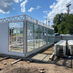 Выполнено остекление павильона на береговой линии с применением гильотинной системы. Конструкция состоит из вертикально подвижных стеклянных секций, которые плавно поднимаются и опускаются, позволяя гибко управлять открытием проёмов.