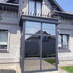 Современный навес из закалённого стекла, установленный на мощной стальной раме, создаёт ощущение лёгкости и защищённости одновременно. Конструкция гармонично интегрирована в фасад дома: стальные балки повторяют цвет и стиль архитектуры, а крупные стеклянные панели открывают максимум естественного света.