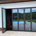 Проект представляет собой масштабное панорамное фасадное остекление частного дома с видом на внутренний двор и зону бассейна. Установлены крупноформатные стеклопакеты на алюминиевом профиле, обеспечивающие максимальный приток естественного света и расширяющие визуальное пространство.