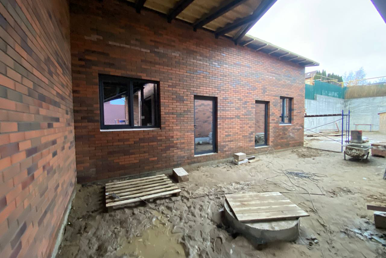 Остекление выстроено в строгой геометрии фасада, подчёркивая современную архитектуру здания из красного керамического блока. Использованы энергоэффективные стеклопакеты с мультифункциональным покрытием — дом получает комфортный микроклимат круглый год.