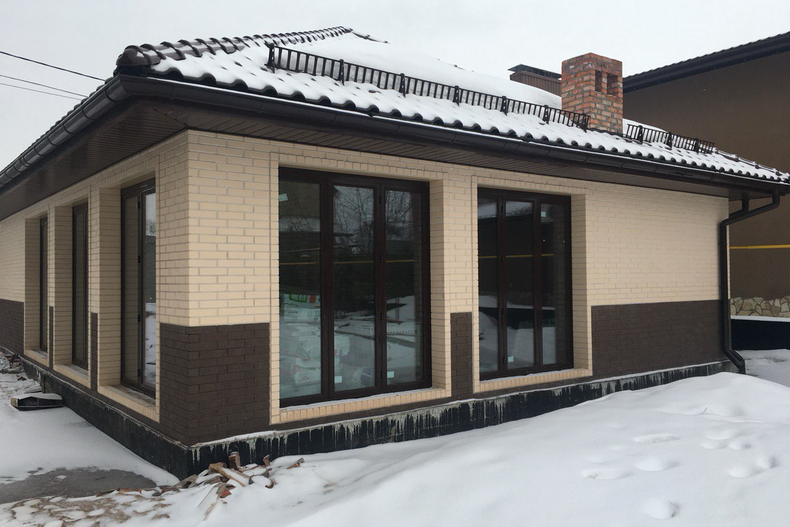 Остекление выстроено в строгой геометрии фасада, подчёркивая современную архитектуру здания из красного керамического блока. Использованы энергоэффективные стеклопакеты с мультифункциональным покрытием - дом получает комфортный микроклимат круглый год.