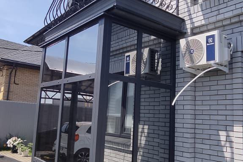 Проект включал установку нескольких светопрозрачных конструкций с алюминиевым профилем и энергосберегающим стеклопакетом.