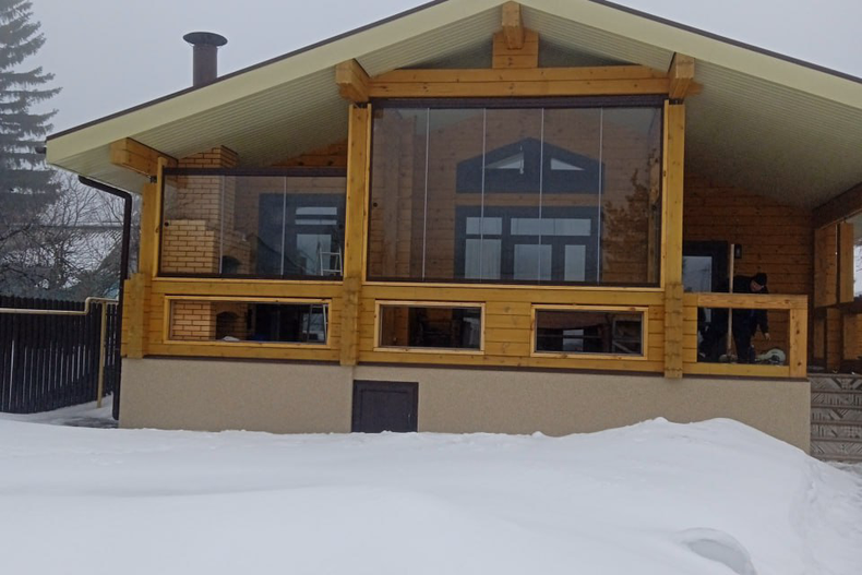 Остекление гармонично интегрировано в архитектуру строения, подчёркивает статус объекта и создаёт комфортное пространство для отдыха в любое время года.